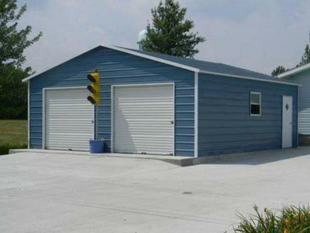 A-Frame with one 6'x6' garge door, walk in door, porch and handrail.